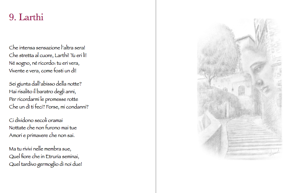 Suggestioni etrusche è una raccolta di ventitré sonetti, ognuno intitolato e dedicato a un’immaginaria donna etrusca, vissuta oltre duemila anni fa…